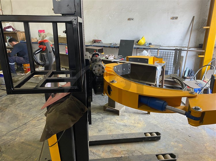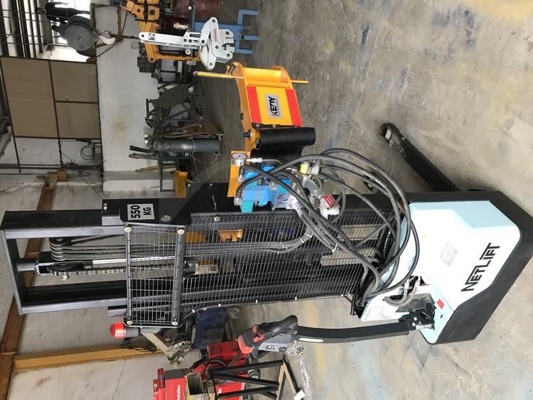 Ürünleri yerden dikine alıp kaldırır ve daha sonra döndürerek makinaya takar. Kaldırma ve döndürme hareketleri hidrolik tahrikle yapılmaktadır. Aparat, makinalar arasında rahat bir şekilde dolaşacağından dolayı akü ile çalışmaktadır.